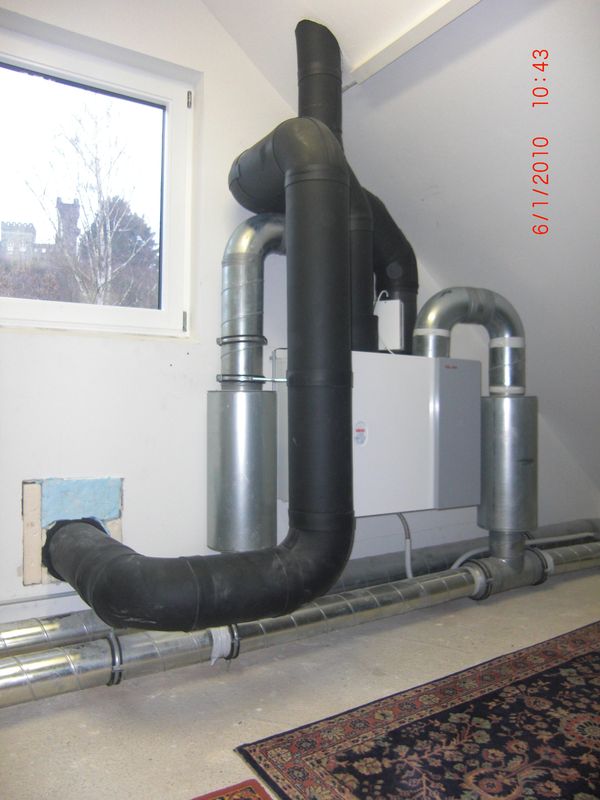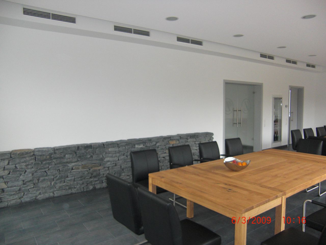 Für die Belüftung der Räumlichkeiten sorgt eine Zu- und Abluftanlage mit Wärmerückgewinnung sowie eine Abluftanlage für die innenliegenden WC-Anlagen.