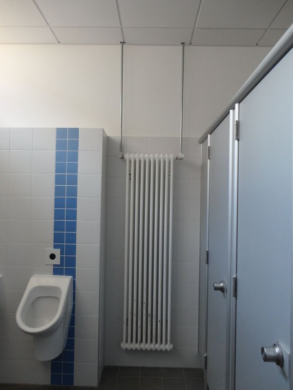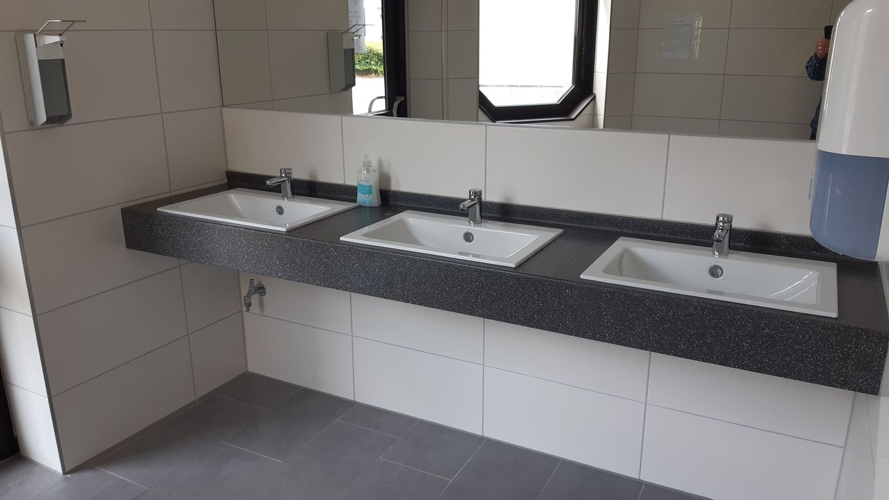 Für die Lüftung wurden vier Lüftungsgeräte mit Wärmerückgewinnung, jeweils mit einer Luftleistung von 650 m³/h, installiert. Im Sanitärbereich wurden moderne Lösungen implementiert, um den Bedürfnissen der Schüler und des Schulbetreiebes gerecht zu werden.