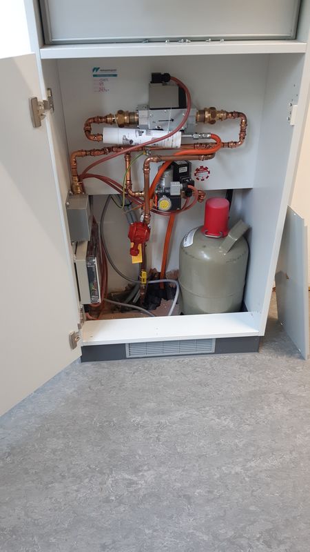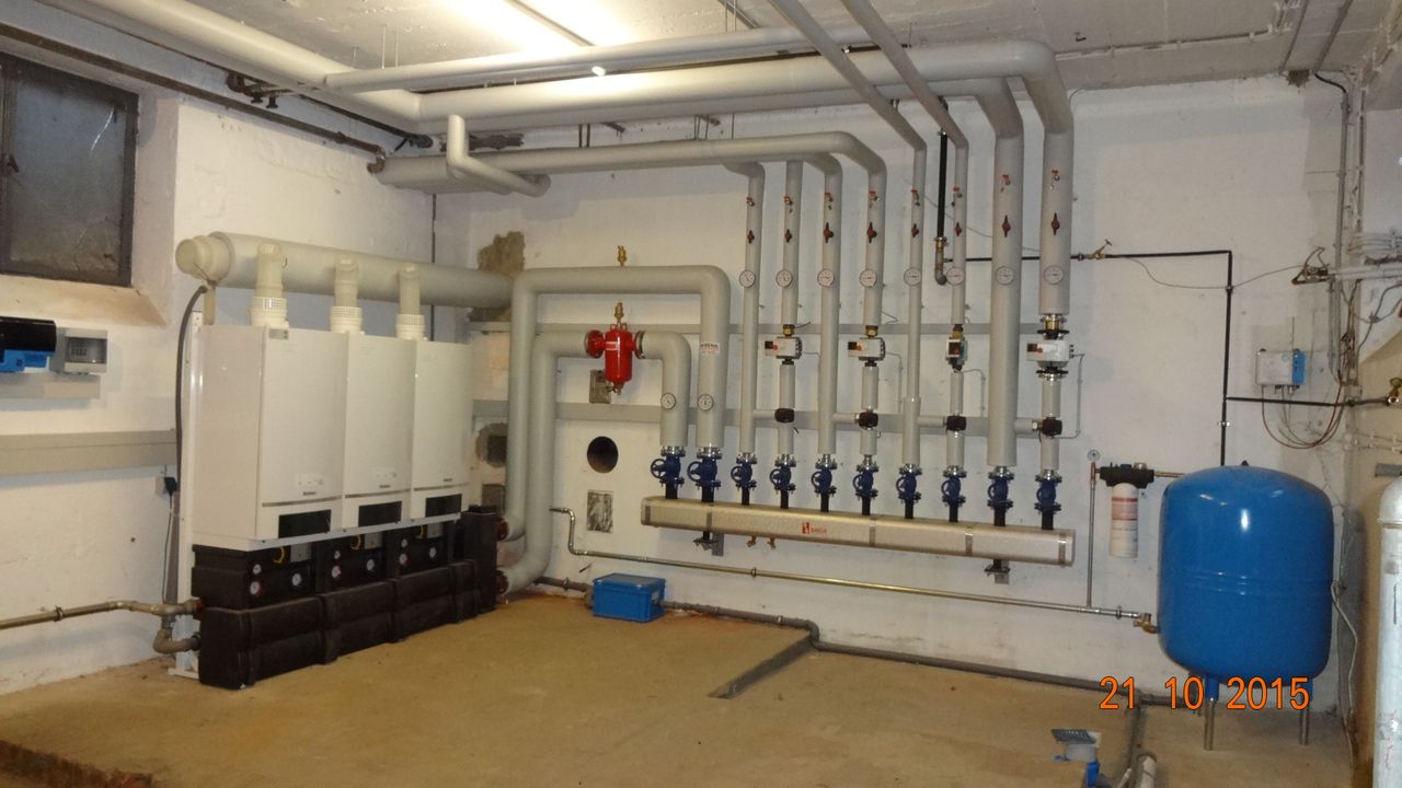 Im Heizungsbereich wurde ein Öl-Brennwertkessel mit einer Leistung von 220 kW installiert, ergänzt durch ein Blockheizkraftwerk (BHKW), das 12,5 kW thermische und 5,5 kW elektrische Leistung erbringt. Die Heizungsanlage umfasst zudem Verteiler und Sammler sowei mehrere Radiatorenheizkreise mit Einzelraumregelung, um eine bedarfsgerechte Wärmeverteilung zu gewährleisten.