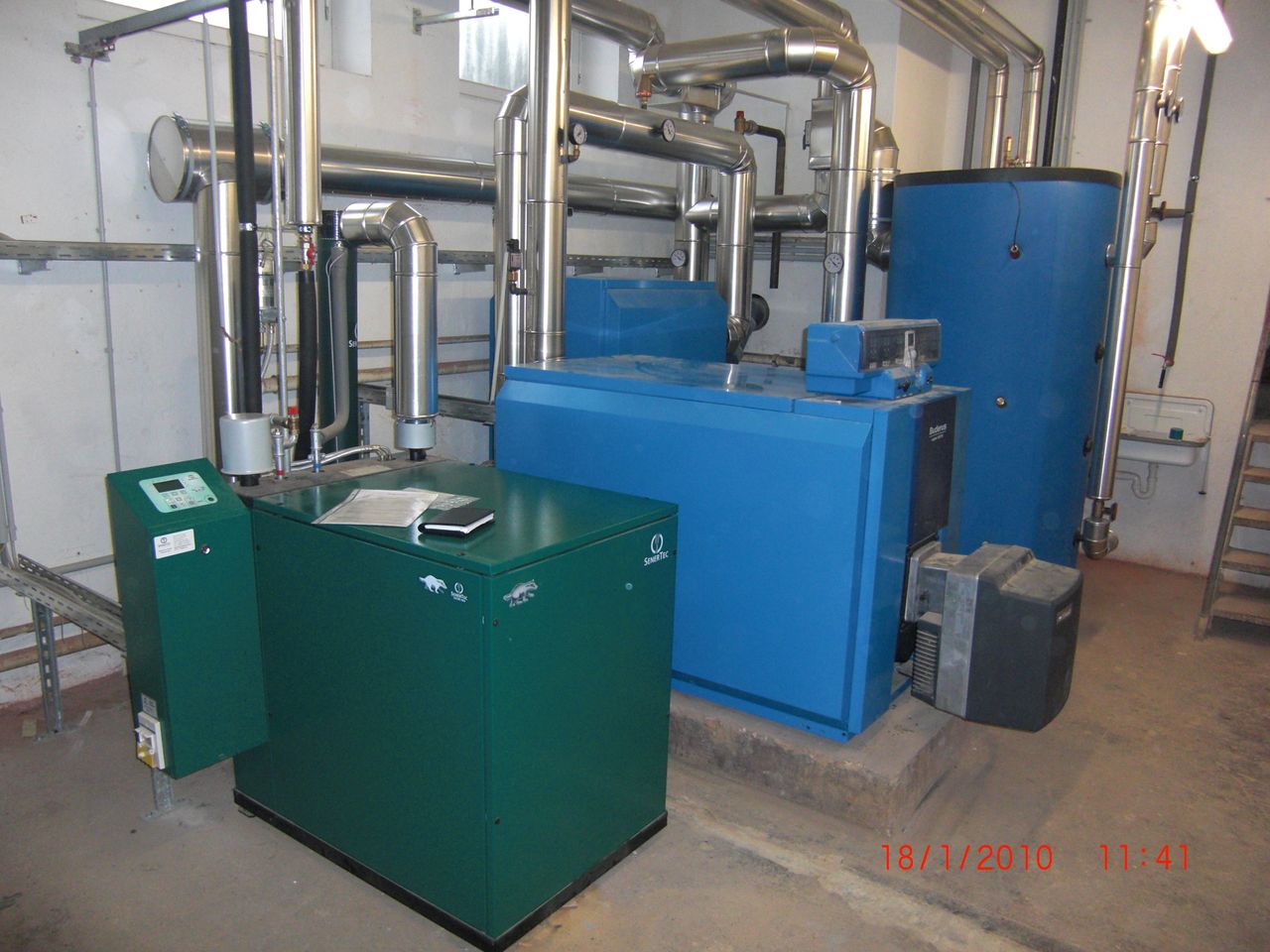Zu den technischen Besonderheiten der Heizanlage gehören ein Öl-Brennwertkessel mit 220 kW und ein BHKW mit 12,5 kW thermischer und 5,5 kW elektrischer Leistung. Die Lüftung wird durch vier Lüftungsgeräte mit Wärmerückgewinnung und einer Kapazität von jeweils 650 m³/h gewährleistet. Das Projekt wurde im Jahr 2010 erfolgreich abgeschlossen.